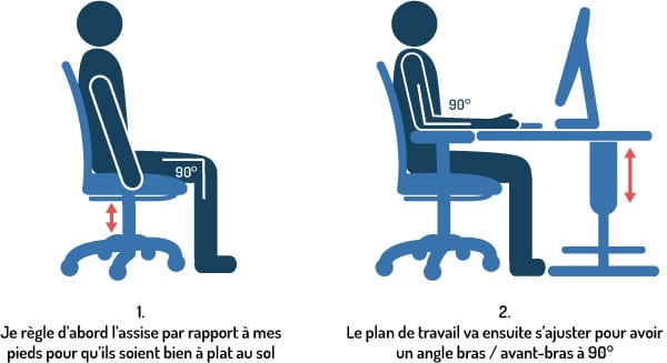 Plus sollicitante physiquement que la position assise, nous vous recommandons de limiter le temps passé en position debout à 30 minutes consécutifs.